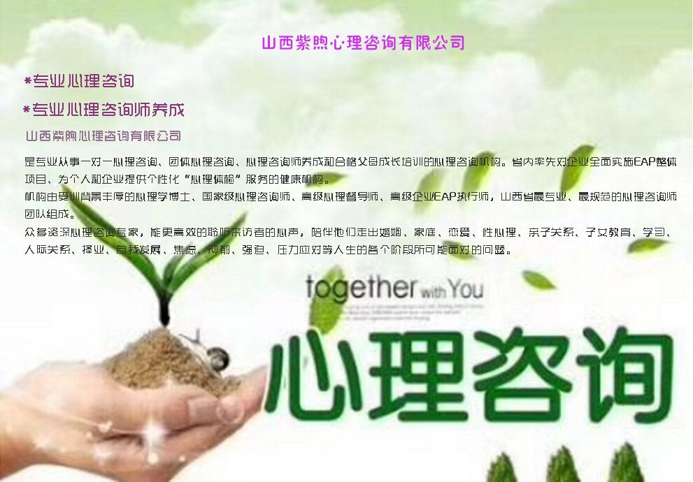 机构由受训背景丰厚的心理学博士、国家级心理咨询师、高级心理督导师、高级企业EAP执行师,山西省专业、规范的心理咨询师团队组成。