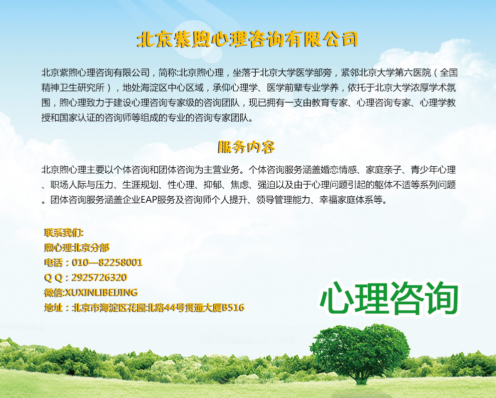 机构由受训背景丰厚的心理学博士、国家级心理咨询师、高级心理督导师、高级企业EAP执行师,山西省专业、规范的心理咨询师团队组成。