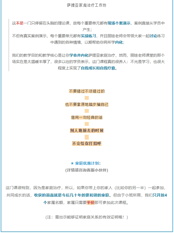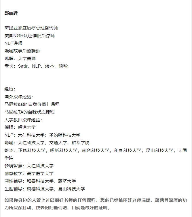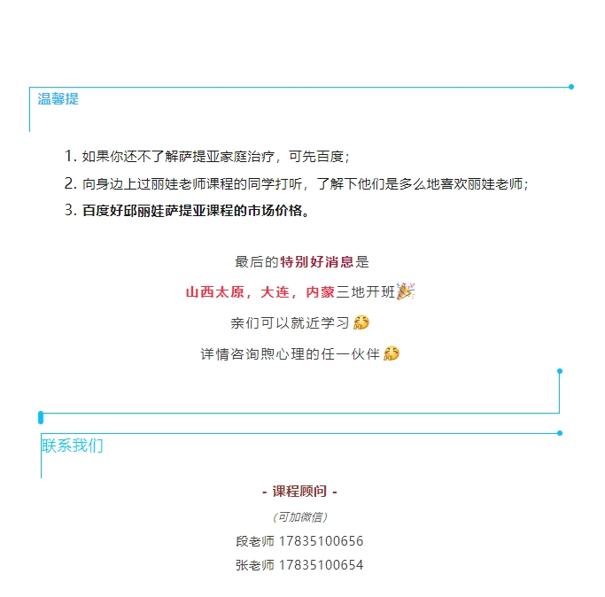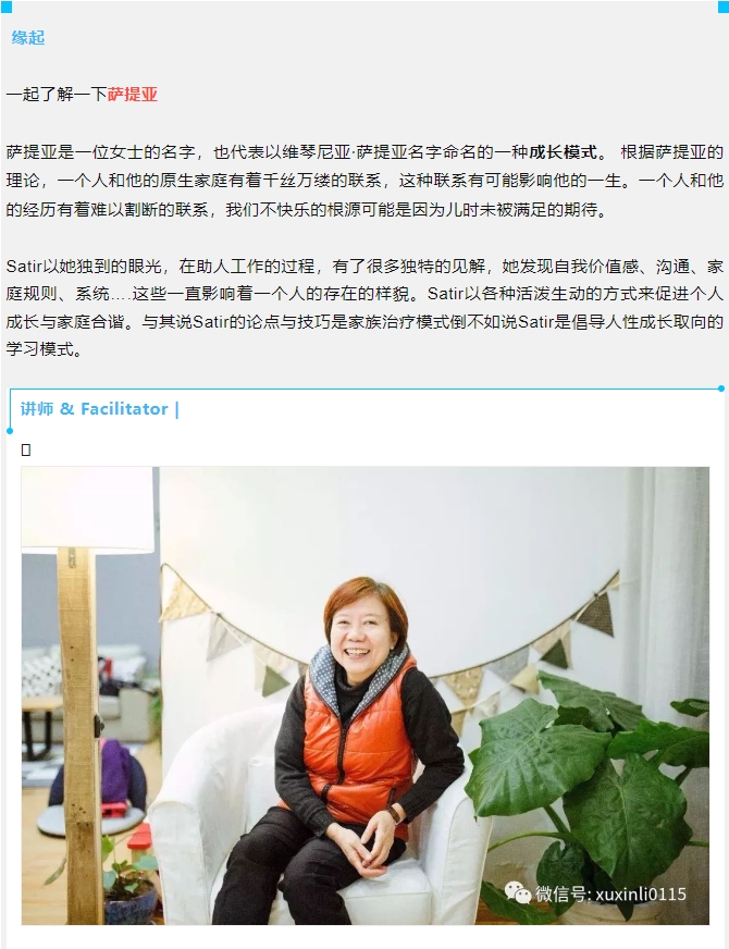 煦心理|2019年台湾邱丽娃萨提亚家庭治疗工作坊