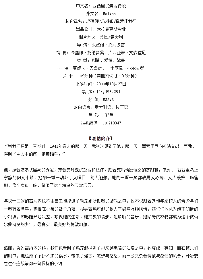 【煦心理】丨电影公开课:《西西里的美丽传说》+心理专家点评