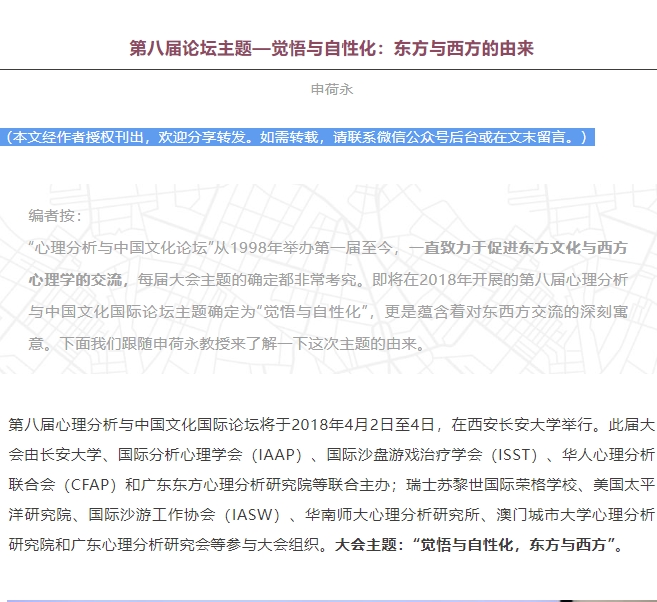 第八届论坛主题—觉悟与自性化:东方与西方的由来 | 申荷永