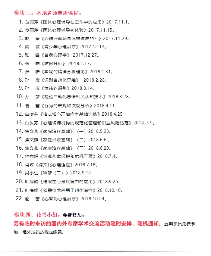 煦心理 | 陕西督导点第五期(2017-2018年度)课程安排